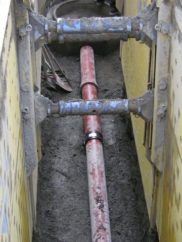 Die wohl bekannteste Sanierungsmaßnahme ist die Erneuerung der Rohrleitungen in der sogenannten offenen Bauweise. Hierbei wird mit verschiedenen Geräten, beispielsweise einem Bagger, ein Rohrgraben hergestellt. In dem geöffneten Rohrgraben werden dann die Rohre in ein ausreichendes Sandbett verlegt und zum Schutz mit Sand ummantelt.